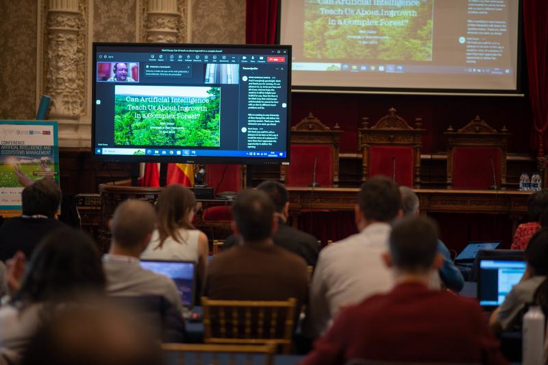 Entre los ponentes destacados se encuentra Mark Ducey, de la Universidad de New Hampshire (Estados Unidos), quien ha hablado de cómo usó la IA para modelizar la regeneración de diferentes especies arbóreas en los bosques de Maine (EEUU). Estos modelos predicen qué especies de árboles y en qué número es más probable que aparezcan en un bosque y zona determinada en función de, por ejemplo, qué árboles ya están presentes o la zona en la que se encuentre.